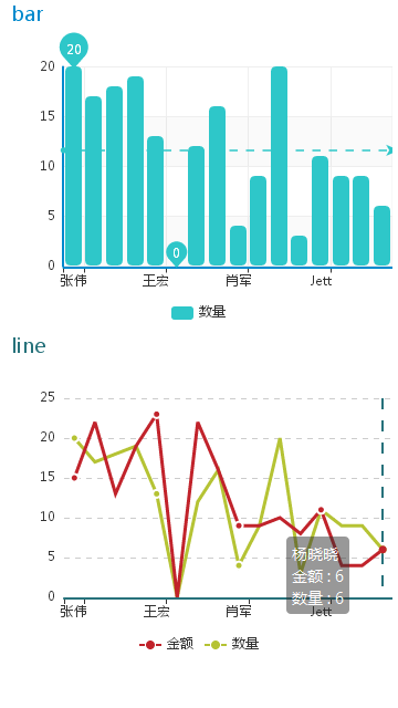 移动BOS提供了各式的图表和多种图表主题,同时还提供了多种数据源开发模式。开发者根据需要可个性化定制各式图表。